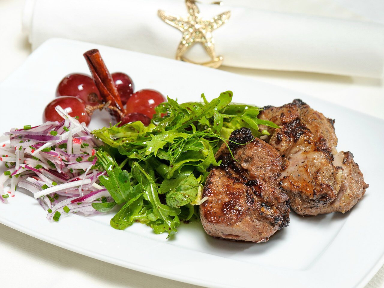 Завдяки необмеженій фантазії шеф-кухаря, поряд з чудовими стравами європейської, середземноморскої, української та місцевої кухні, ми готові балувати вас кращими авторськими ідеями, де політ фантазії стикається і самими таємними бажаннями гостя.